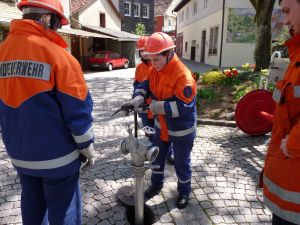 Höhepunkt der 24-Stunden-Übung war die Abschlussübung beim ehemaligen Centro im Inneren Graben. Der angenommene Gebäudebrand erforderte noch einmal den Einsatz aller Gruppenmitglieder. Die Feuerwehrleute von morgen bewiesen Teamfähigkeit und zeigten, dass sie sich mit den Gerätschaften auskennen. Die Aufgaben Wasserförderung, Menschenrettung und Brandbekämpfung wurden hierbei von den Jugendlichen mit Bravour gelöst.