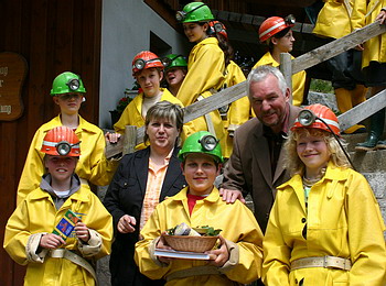 Nach anfänglicher Sprachlosigkeit fing er sich schnell wieder und marschierte mit seinen Kameraden in Richtung Bergwerk, um sich die Welt unter Tage ganz genau anzuschauen.