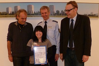 Lahr. Ehrung von Franziska Jungmann am 8. März 2013 anlässlich Ihres mutigen und vorbildlichen Verhaltens am Sonntag, 27.01.2013 beim Auffinden eines vermissten Jugendlichen.