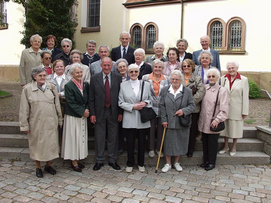 Bei einem gemeinsamen Abendessen im Gasthaus Aiple bei Zwiebelkuchen und neuem Wein gab es allerhand zu erzählen. Den schon 16 Verstorbenen wurde auch dem Friedhof gedacht, bevor es in die Küferstube zum Sektempfang ging. Ein abendfüllendes Programm wickelte sich dort ab. Mit einer großen Schwarzwaldrundfahrt mit den Zielen Steinwasen und der Kirche von St. Blasien einem abschließenden Nachtessen wurde der Sonntag beendet.