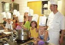 Fischerbach. Im Rahmen des Sommerspaßprogramms betätigten sich neun Schülerinnen und Schüler als Kochkünstler bei Küchenmeister Patric Hermann im Gasthaus Engel in Fischerbach. Die Gruppe der Jungköche war zwischen acht und elf Jahren. Nach einem Aperitiv und einem Cocktail zauberten sie Croustinis, Caprese Tomaten Mozzarella, frische hausgemachte Nudeln und Ravioli mit Tomatensoße/ Pesto und Champignons. Creme Caramel mit Himbeeren bildete den Abschluss. Selbstverständlich durften alle Köchinnen und Köche das Gekochte probieren.