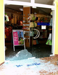 Haslach. Ein Einbrecher versuchte in der Nacht zum Sonntag in die Keilbach-Filiale am Marktplatz einzubrechen. Gebremst wurde er vom guten Sicherheitsglas der Eingangstüre, da half auch rohe Gewalt nichts. Er kam nicht in das Geschäft hinein. Die Bewohner wurden mitten in der Nacht um 03:00 Uhr morgens von einem lauten Knall aufgeschreckt. Pech für den Einbrecher: Am Sonntagmorgen um 11:00 Uhr fiel die linke Tür dann doch noch in sich zusammen.